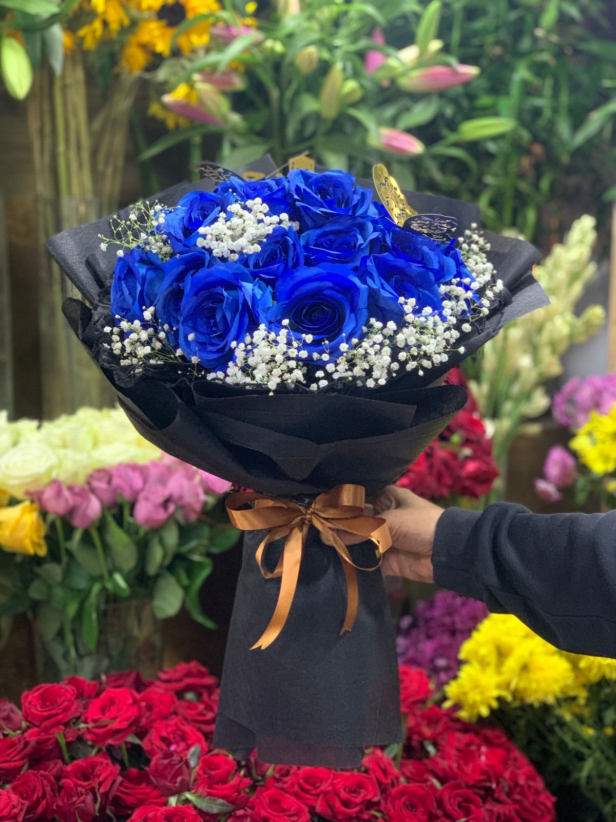 بوكيه ورد أزرق طبيعي بتصميم أنيق وفخم يرمز للثقة، الهدوء، والتميز. مزيج من الجمال النادر وسحر اللون الأزرق الذي يخطف الأنظار ويمنح إحساسًا بالراحة والرقي. مثالي للهدايا الفاخرة، المناسبات المميزة، أو لتزيين أي مكان بلمسة من الجمال الهادئ.