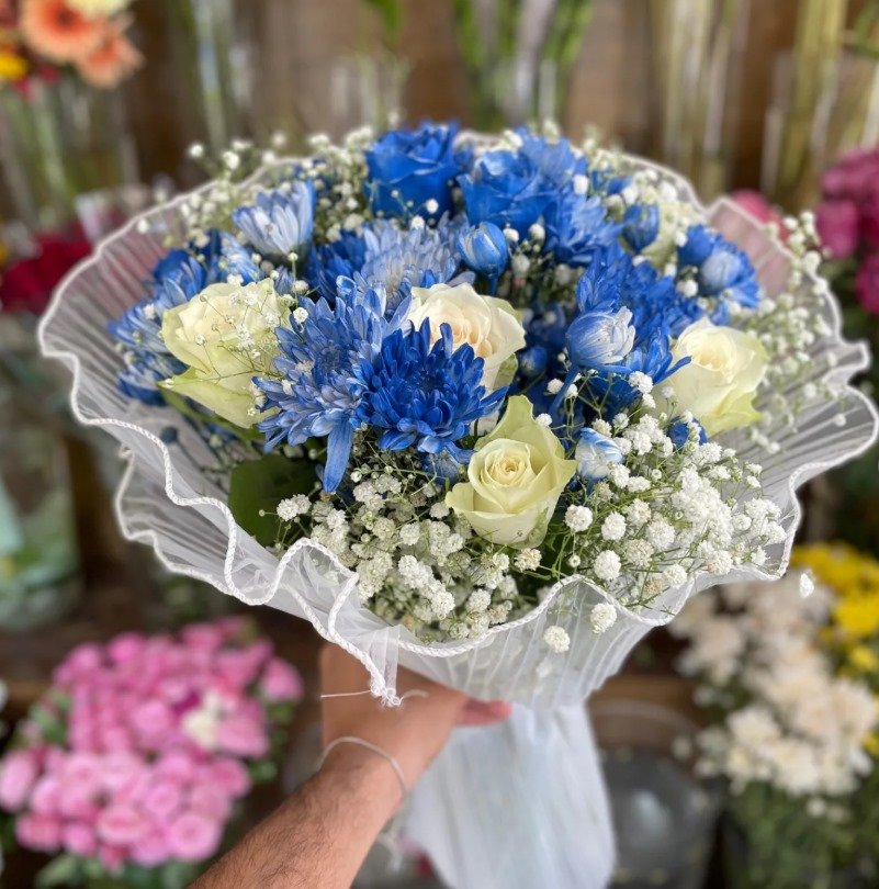 كن أول من يقيم “بوكيه الهدوء الملكي – ورد أزرق طبيعي يفوح بسحر الأناقة 💙🌸” إلغاء الرد