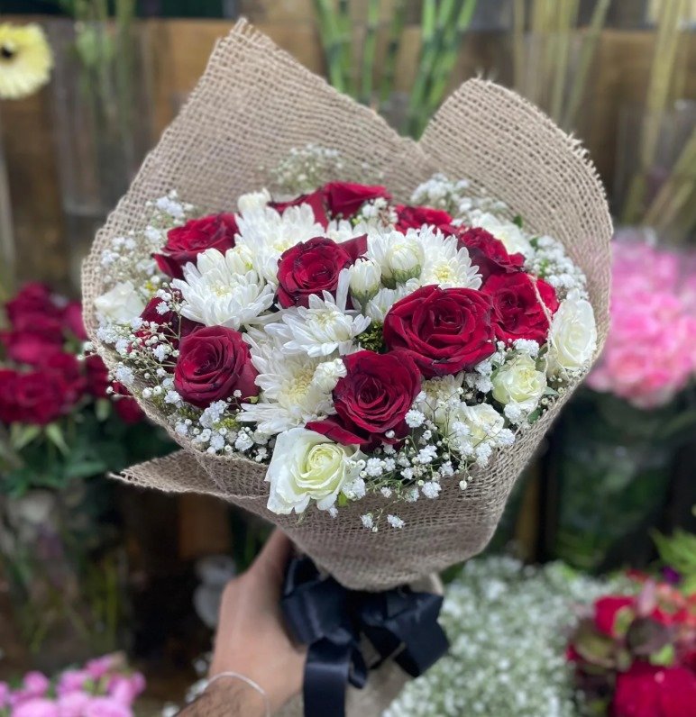 بوكيه ورد ابيض و احمر
