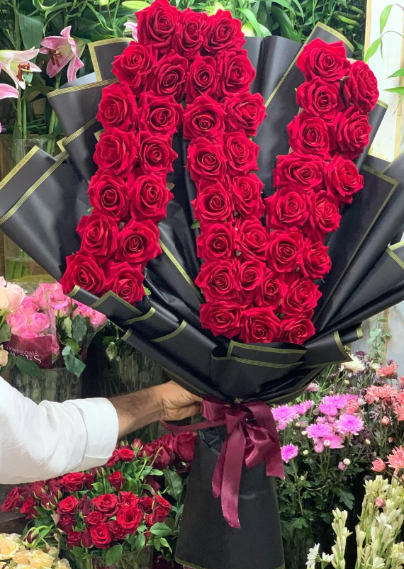 بوكيه ورد صناعي علي حرف N ويوجد جميع الحروف