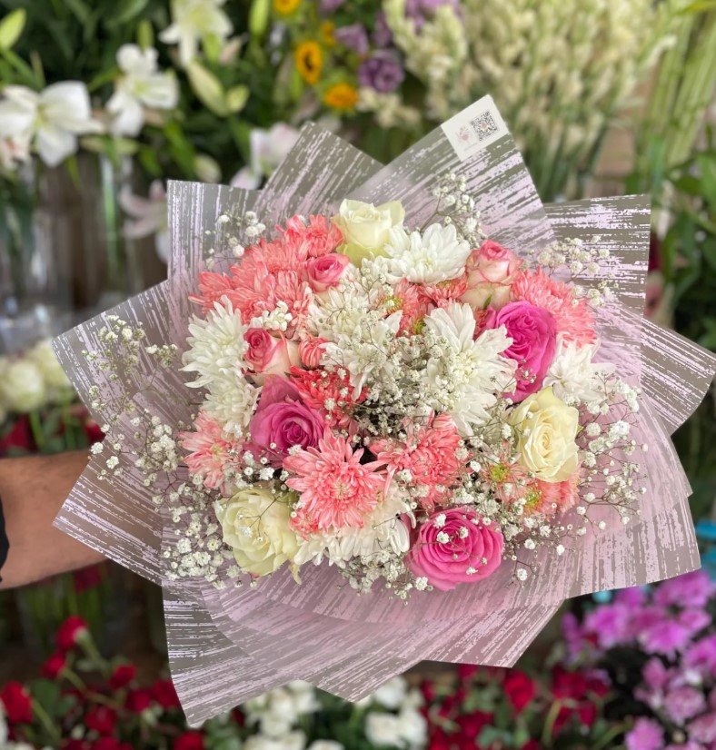 بوكيه مميز يضم باقة متنوعة من أجمل ألوان الورود الجميله، يعبر عن البهجة والحب في كل مناسبة. مثالي للإهداء، التهاني، أو تزيين اللحظات الخاصة.