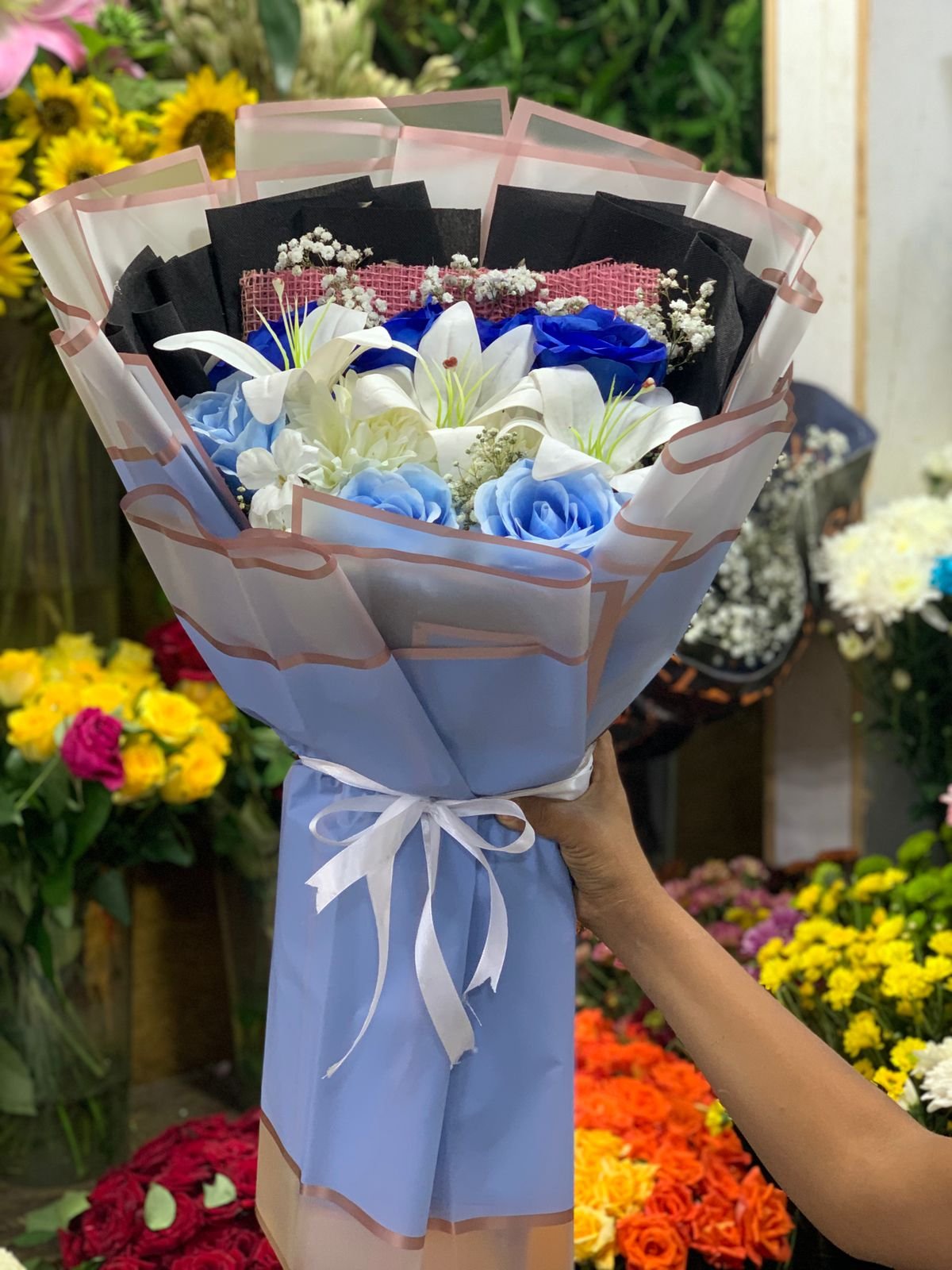 بوكيه أنيق مصنوع من أجود أنواع الورود الصناعية بتصميم راقٍ يشبه الورود الطبيعية تمامًا. مثالي للإهداء، تزيين المنزل، المناسبات، حفلات الزفاف والخطوبة. يتميز بثبات شكله وجماله لفترة طويلة، ليمنحك لمسة فخامة دائمة.
